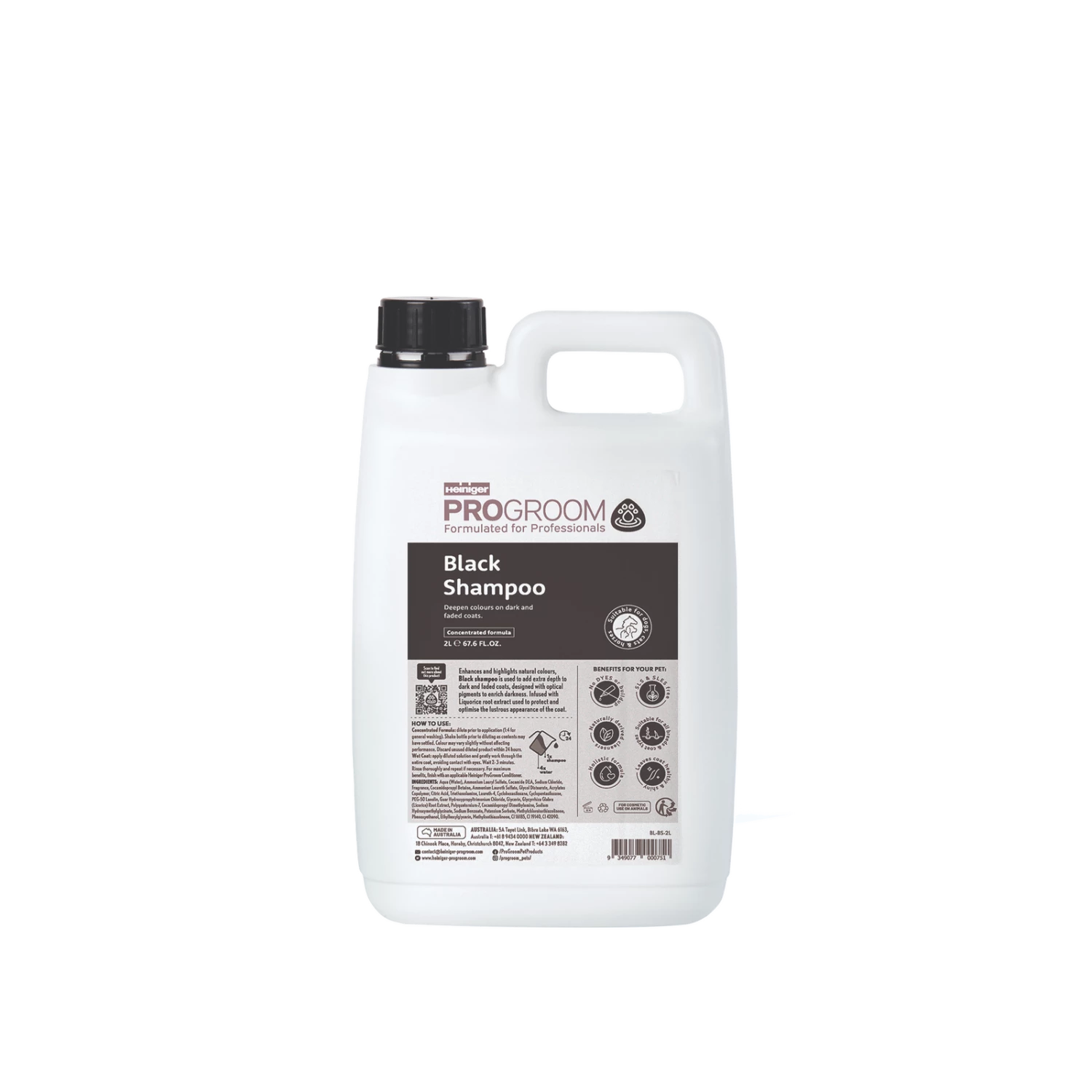 Black shampoo is designed with optical pigments to enhance black and dark coats use to optimize the lustrous appearance of the coat. It will deepen the depth of colour and give an appearance of greater blackness to the coat.